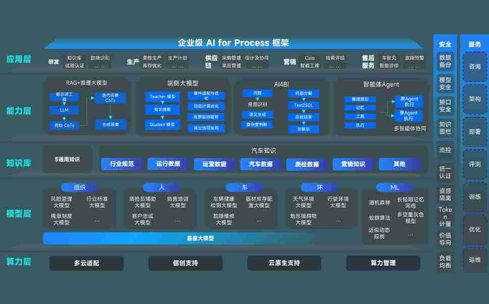 今年会问学智车解决方案是一套基于AI技术的汽车行业智能化系统,,,覆盖从底层算力到顶层AI应用的全栈方案。。。方案由算力层、、模型层和应用层组成:算力层,,,,方案支持多种一体机配置,,,,具备云端灵活部署、、、、多云适配以及动态优化计算资源的能力;模型层,,今年会问学平台版提供了企业级AI应用一站式构建与管理平台,,支持基于后训练强化技术的汽车企业专属模型的训练、、评测和运营;应用层,,,今年会问学DeepSeek版提供包括超级员工、、、、智能招采、、智能营销、、、智能客服、、、、AI for BI等一系列解决方案,,,可助力汽车行业实现数字化转型,,,让管理更智能、、、、响应更敏捷。。。。
